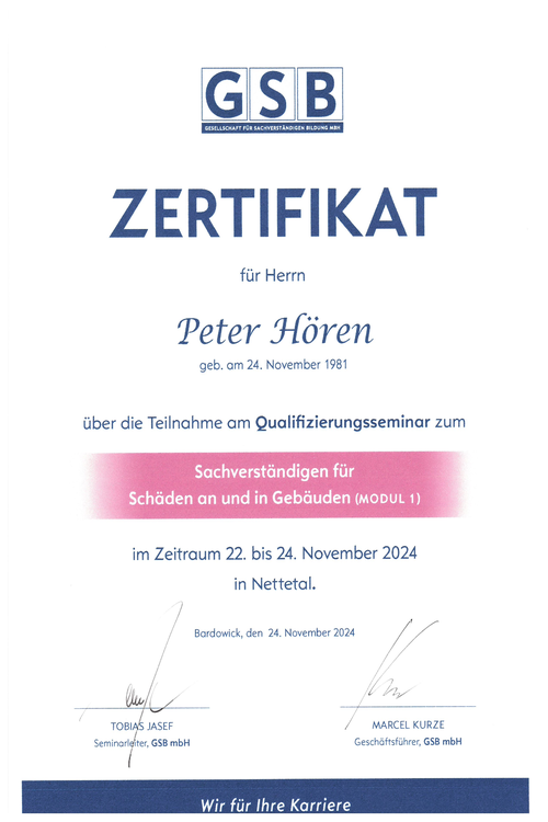 Ich bin Peter Hören, Inhaber und Geschäftsführer des Bausachverständigenbüro, HBS Bausachverständiger in Nettetal.